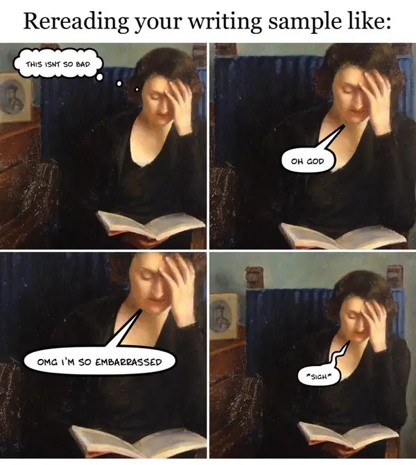 Try blog posts. Sometimes I go back especially in a series and just make a cringy face.